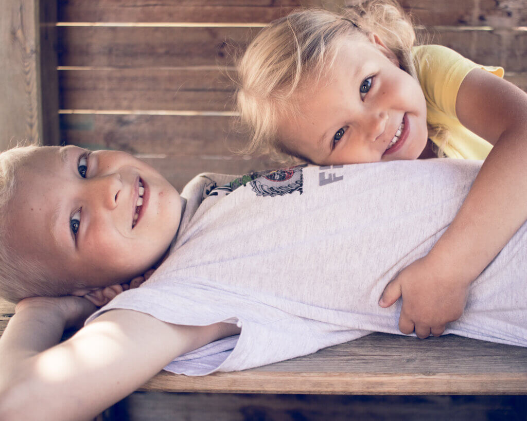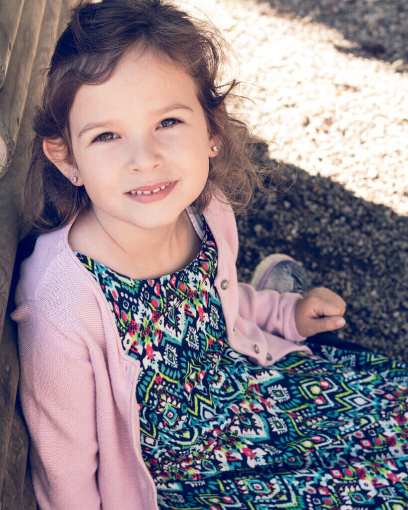 Um das Vertrauen der Kinder zu gewinnen, starte ich mit ruhigen Portraitfotos. Ich suche mir gemeinsam mit dem Kind einen Platz mit einem ruhigen und strukturierten Hintergrund, wie z.B. ein Baum oder Holzschuppen.